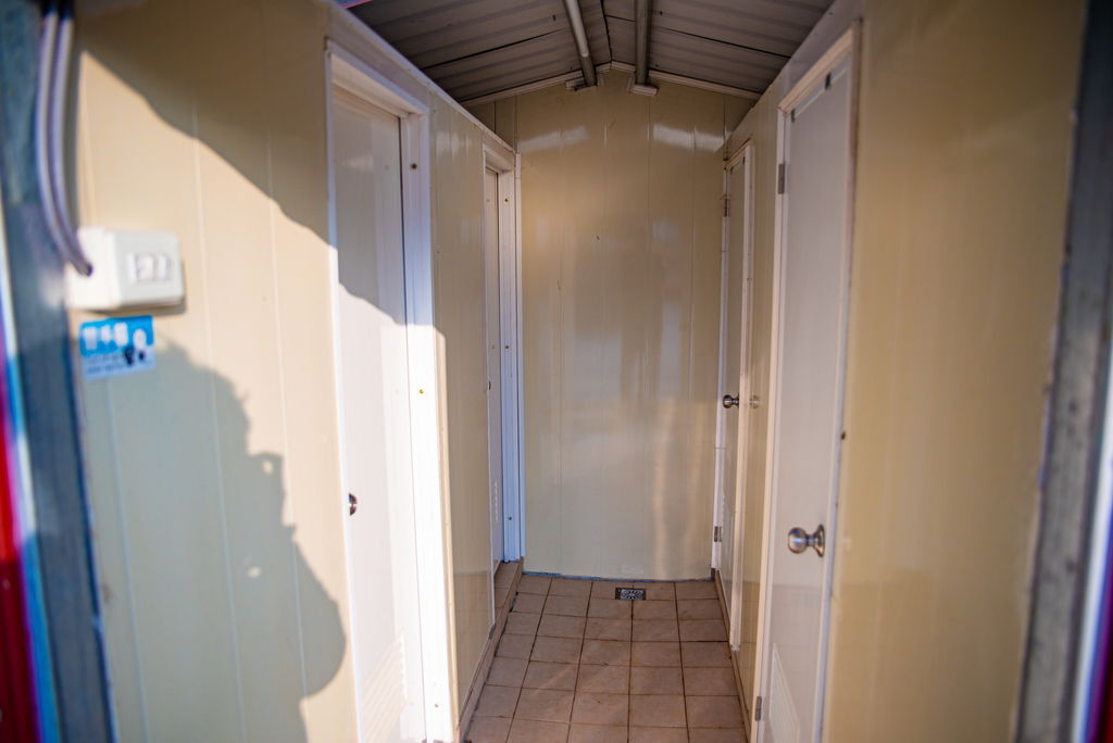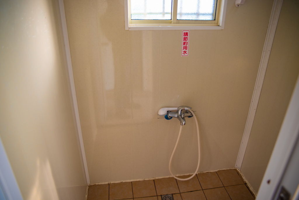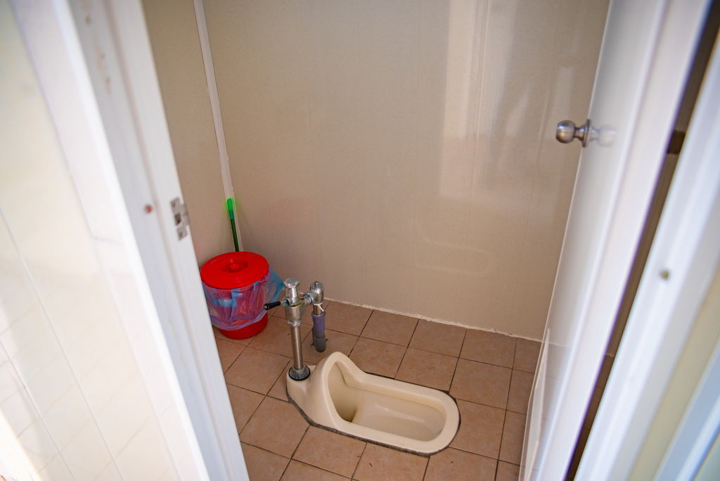 女生浴廁裡有兩間淋浴及兩間蹲式廁所